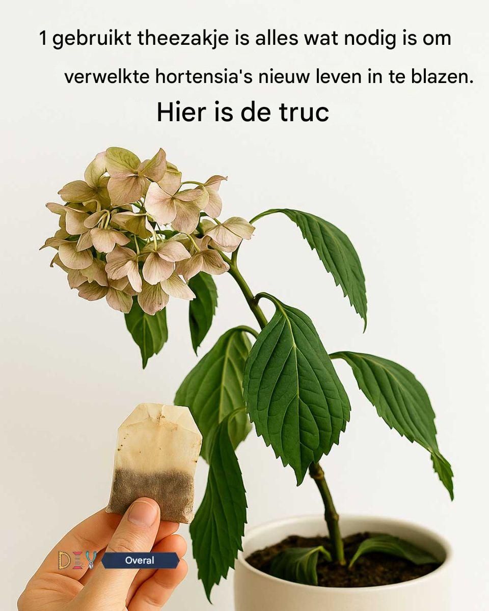 1 gebruikt theezakje is alles wat nodig is om verwelkte hortensia’s nieuw leven in te blazen. Hier is de truc.