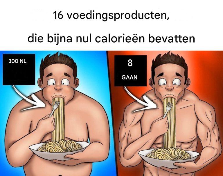 Selderij, 95% water, bevat 14 calorieën per 100 gram. Het kan ook gunstig zijn voor de mannelijke vruchtbaarheid en de bloeddruk helpen substantieel dankzij het nitraatgehalte.
