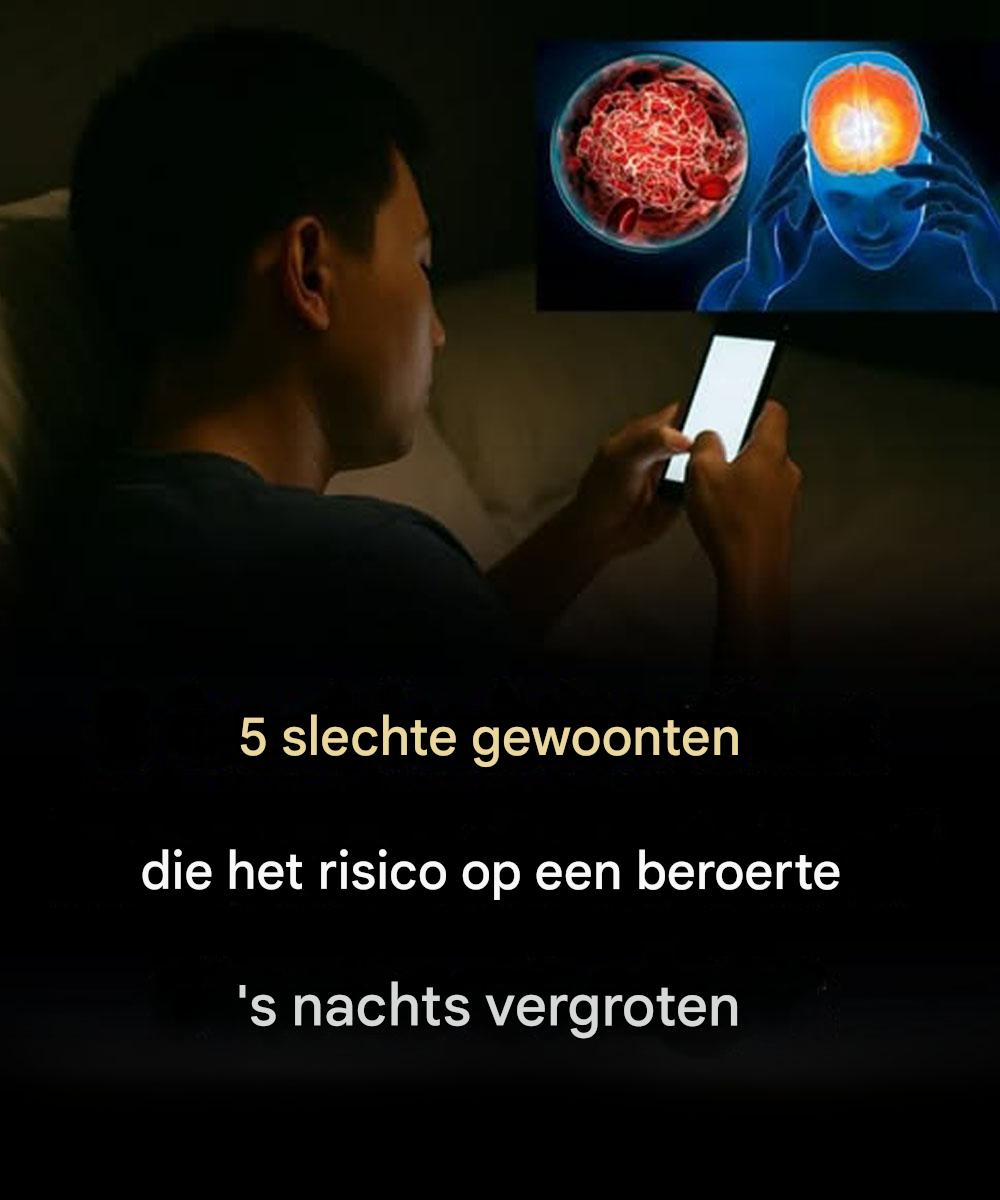 Een beroerte, een ernstige aandoening, treedt op wanneer de bloedtoevoer naar de hersenen wordt onderbroken. Hoewel sommige risicofactoren, zoals leeftijd en genetica, niet te beheersen zijn, kunnen bepaalde gewoonten de kans op een beroerte vergroten, vooral ‘s nachts. Hier zijn vijf slechte gewoonten die uw risico kunnen verhogen: