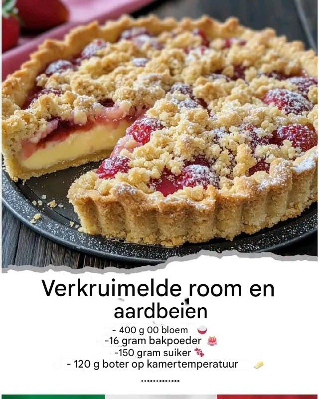 Als je op zoek bent naar een dessert dat eenvoud, frisheid en een heerlijke traktatie combineert, dan is deze aardbeien-roomcrumble het perfecte recept voor jou. Met zijn kruimelige bodem van zanddeeg en zachte kern van custard en verse aardbeien, zal hij je zeker bij de eerste hap bekoren. Gemakkelijk te maken en perfect voor elke gelegenheid: van een tussendoortje tot een feestje, van ontbijt tot het einde van een zondagse lunch. Een ware traktatie die smaakt naar thuis én lente!