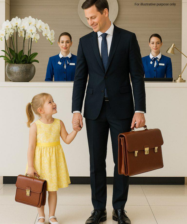 Op een dinsdagochtend, terwijl managers in nette pakken met hun badges in en uit stroomden, verwachtte niemand enige verstoring. Maar toen draaiden de draaideuren rond en stapte een meisje van een jaar of acht in een gele jurk naar binnen.