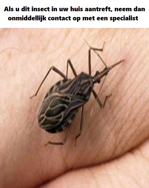 Allereerst moet u weten dat dit insect de gevaarlijkste ziekte overbrengt: « Amerikaanse trypanosomiasis ». Het is een uiterst gevaarlijke ziekte voor zowel mens als dier, die zelfs dodelijk kan zijn!