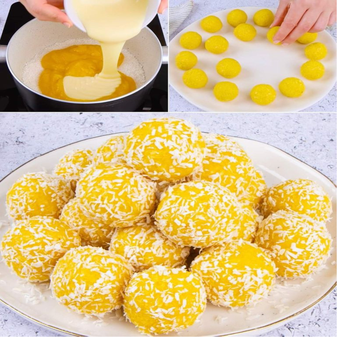 INGREDIËNTEN 2 mango’s 220 g mangopuree 130 g geraspte kokosnoot 150 g gecondenseerde melk METHODE Lees meer op de volgende pagina