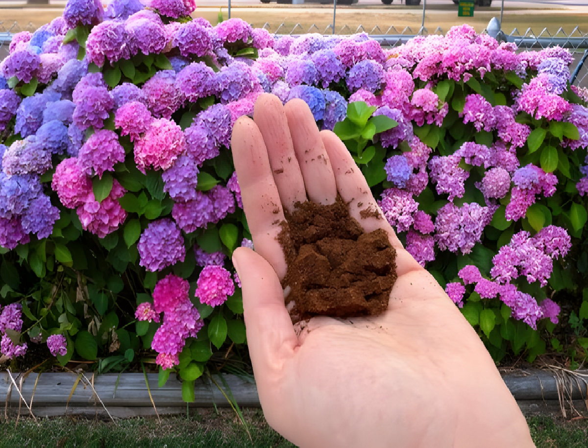 Strooi het op de aarde rondom de hortensia. Het zal prachtig bloeien!