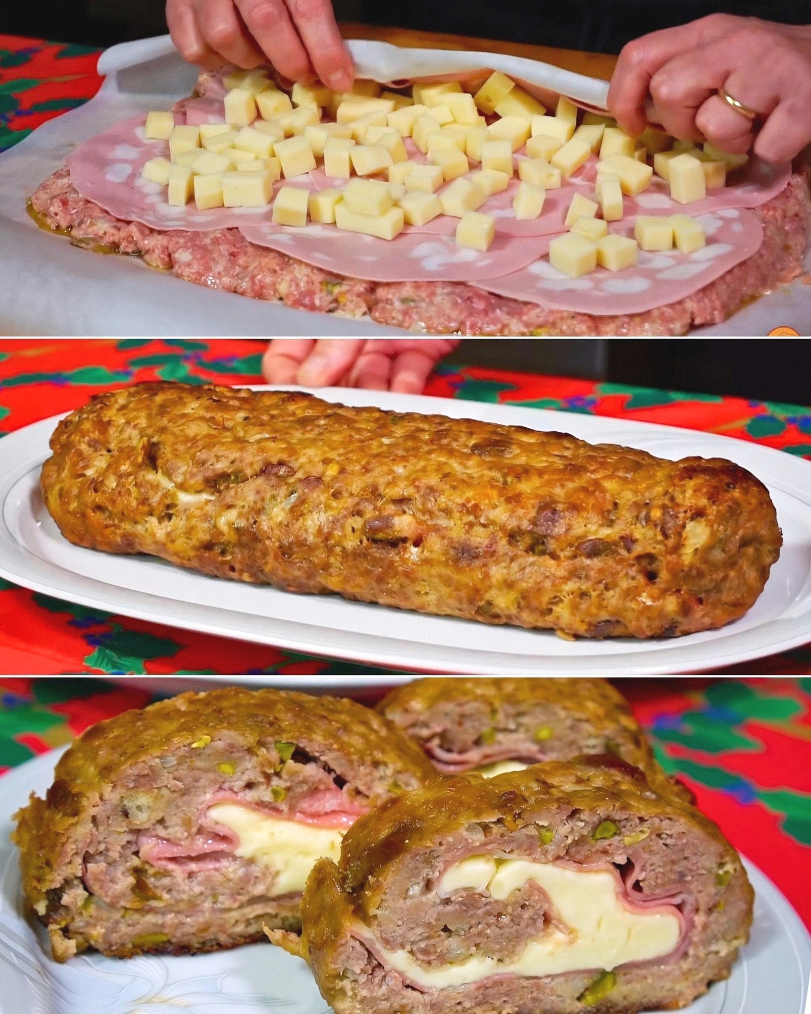 Ingrediënten (voor 4-6 personen) 500 g gemengd gehakt (kalfs-, varkens- of rundvlees) 2 eieren 50 g geraspte Parmigiano Reggiano 100 g paneermeel 1 teentje gehakte knoflook (optioneel) 1 eetlepel gehakte peterselie Zout en peper naar smaak 100 g gekookte ham 150 g kaasblokjes (provola, scamorza of goed uitgelekte mozzarella) 2 eetlepels extra vergine olijfolie Optioneel: … Lire plus