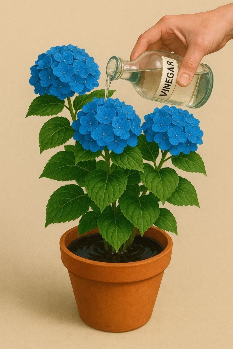 Om blauwere hortensia’s te krijgen, kunnen tuinders een kopje witte azijn mengen met 4 liter water en dit aanbrengen op de grond rond de hortensia’s. Dit moet eens in de twee weken tijdens het groeiseizoen gebeuren. Het azijnzuur in azijn helpt de zuurgraad van de grond te verhogen, wat op zijn beurt de blauwe pigmentatie van hortensiabloemen versterkt.