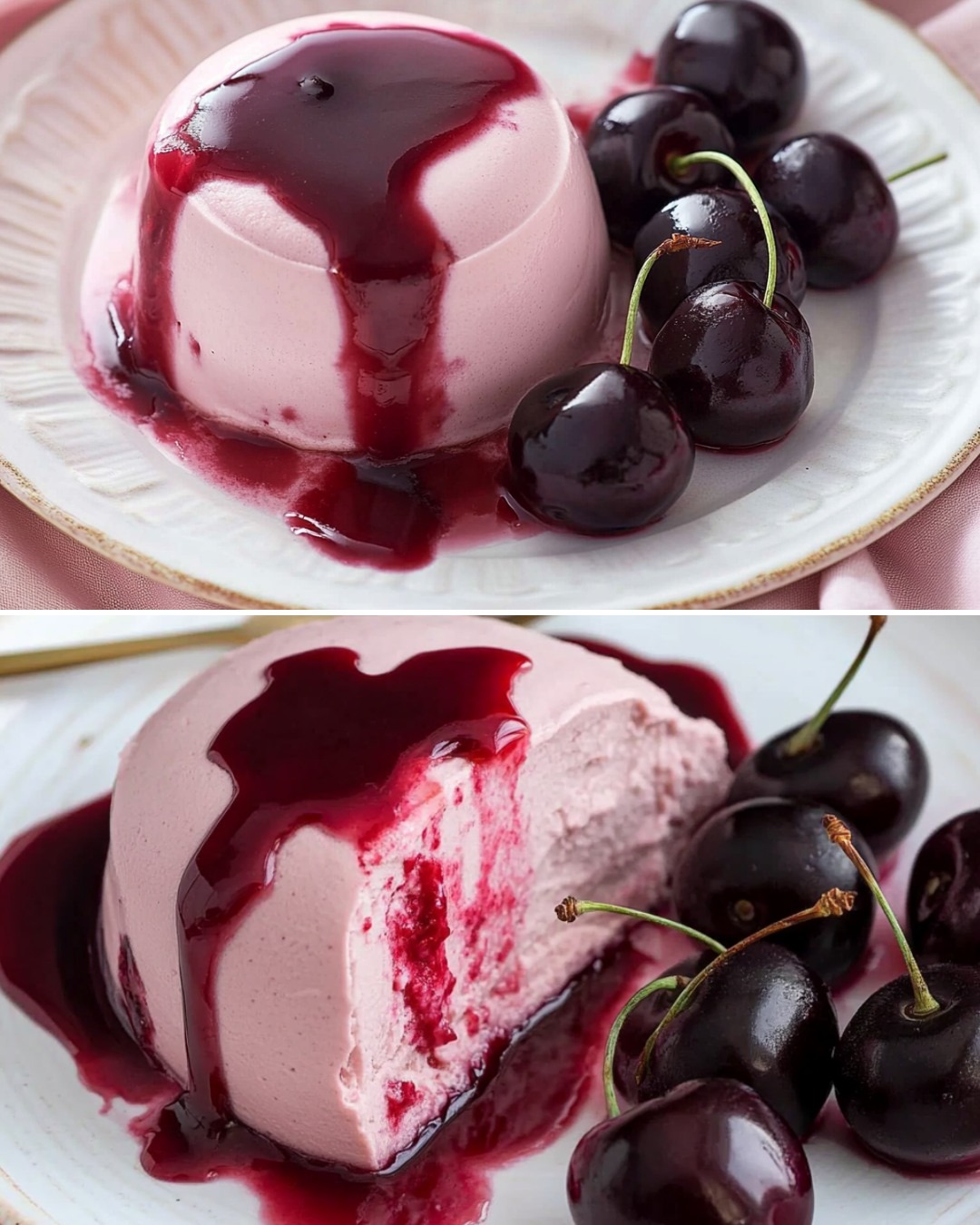 Kersenbavarois is een verfijnd Frans dessert dat de romigheid van traditionele bavarois combineert met de intense smaak van verse kersen. Dit elegante dessert heeft een lichte, luchtige textuur die smelt in je mond en een intense kersensmaak biedt, perfect in balans gebracht door een vleugje vanille. Of je nu een etentje organiseert of jezelf trakteert op een speciaal moment, dit recept voor kersenbavarois zal indruk maken met zijn presentatie van restaurantkwaliteit en onvergetelijke smaak.