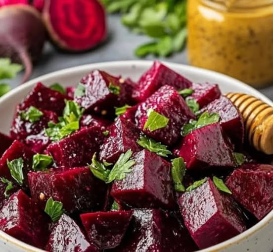 Bieten zijn een van de meest iconische groenten in de Poolse keuken, gewaardeerd om hun gezondheidsvoordelen en unieke smaak. Ze kunnen op vele manieren worden bereid, maar de combinatie met honing en Franse mosterd geeft ze een uniek karakter. Deze combinatie van de natuurlijke zoetheid van bieten, de subtiele pittigheid van mosterd en de aromatische honing is het proberen waard voor elke gelegenheid. Dit recept tilt bieten naar een heel nieuw niveau: ze passen perfect bij vleesgerechten, maar kunnen ook als een los tussendoortje worden gegeten.