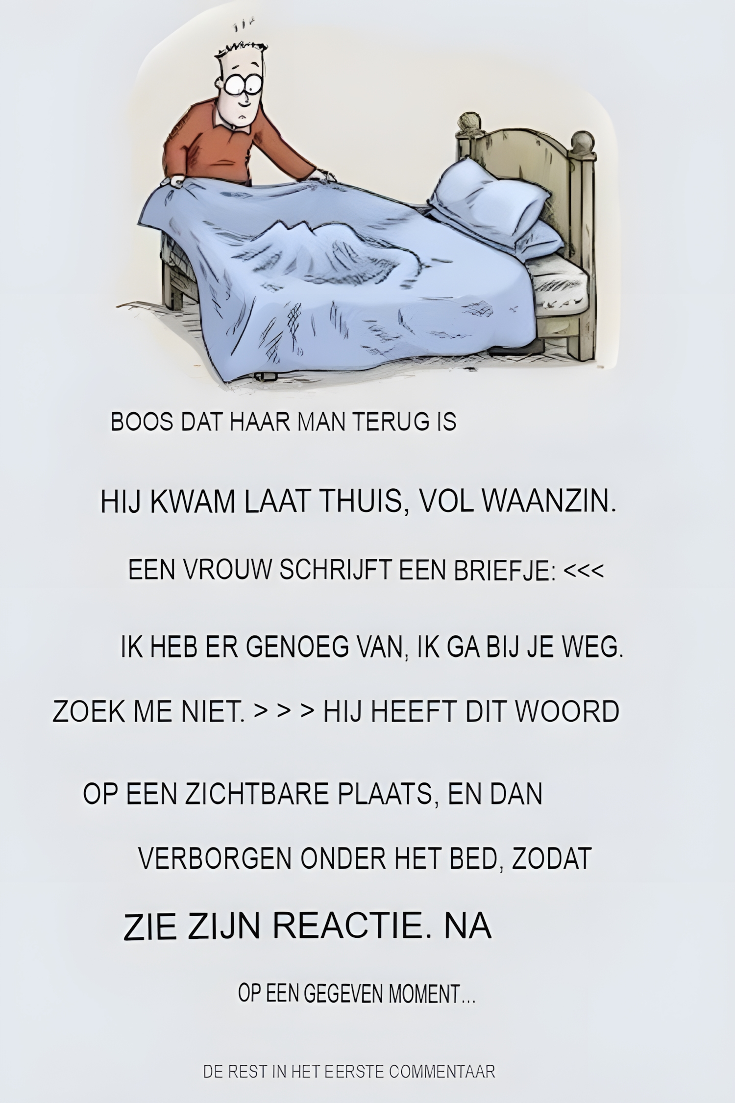 Boze vrouw schrijft briefje nadat haar man laat thuiskomt