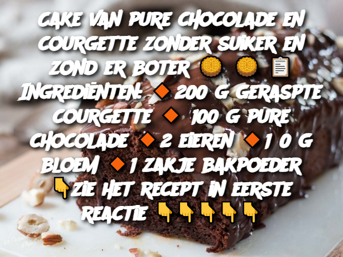 Cake van pure chocolade en courgette zonder suiker en zonder boter 🥮 🥮 📋 Ingrediënten: 🔸200 g geraspte courgette 🔸 100 g pure chocolade 🔸2 eieren 🔸150 g bloem 🔸1 zakje bakpoeder 👇zie het recept in eerste reactie 👇👇👇👇👇