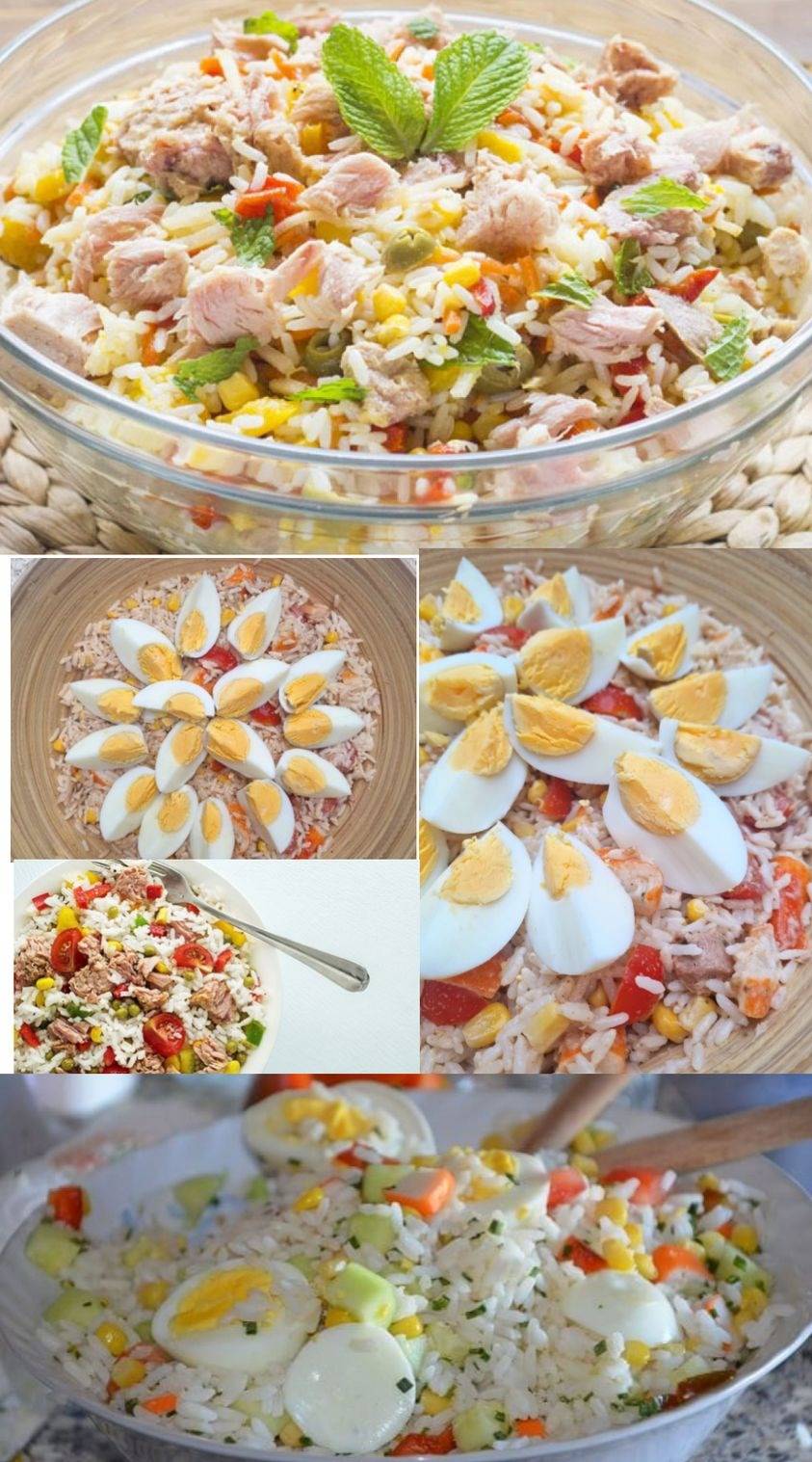 Rijstsalade met tonijn en hardgekookte eieren