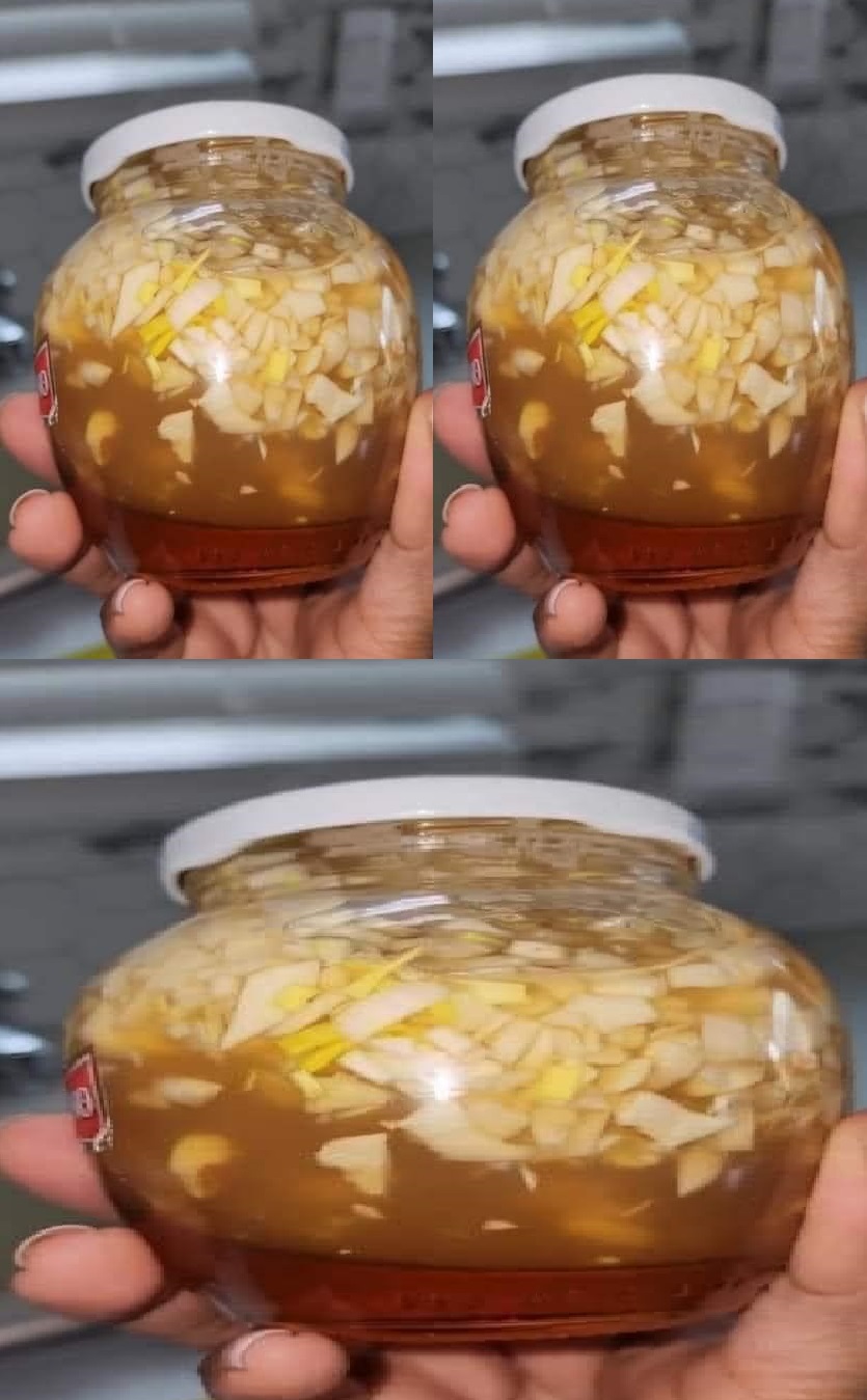 geraspte gember, ui, knoflook, citroensap en honing. Eén theelepel per dag