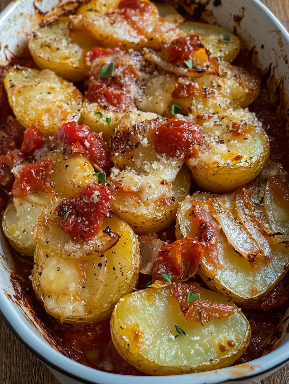 Recept voor gebakken aardappelen met Parmezaanse kaas en groenten