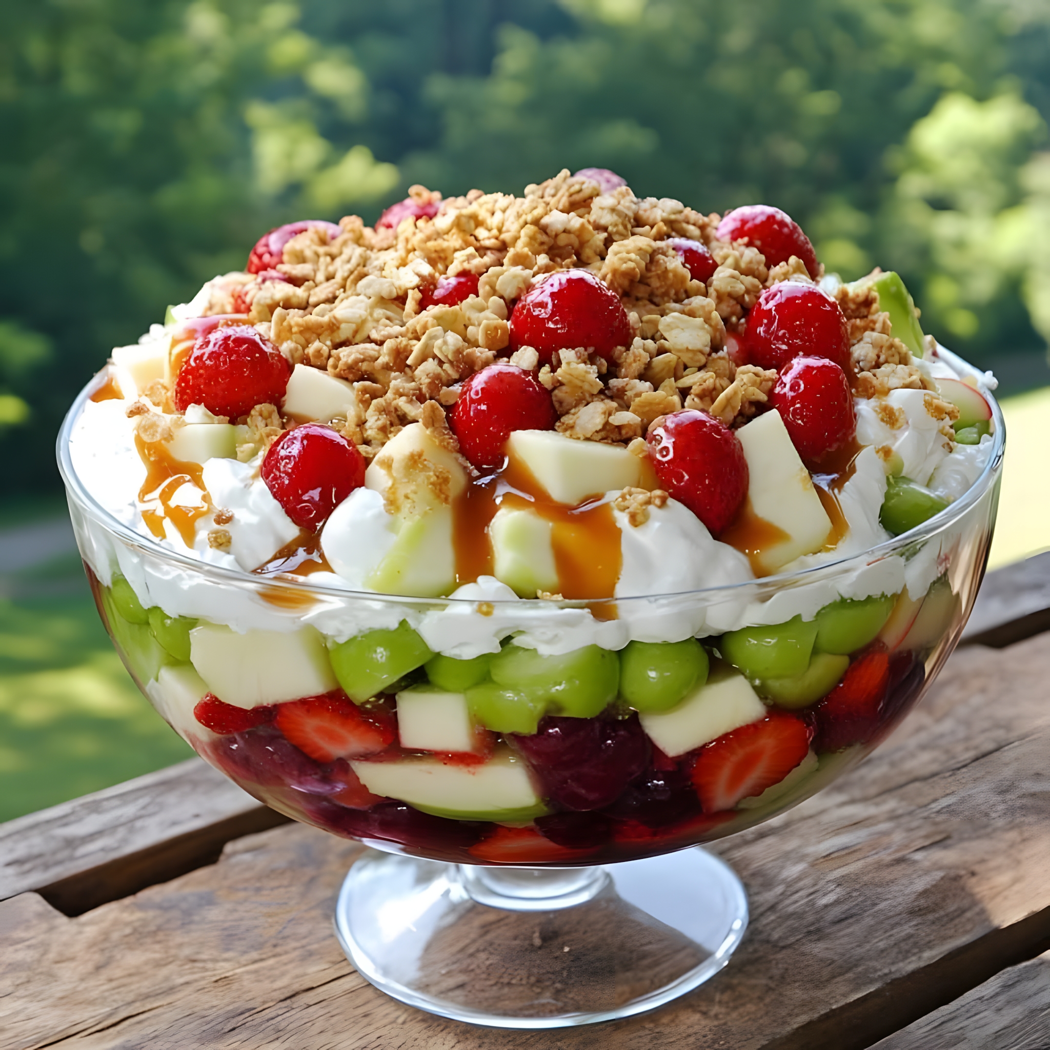 Deze Cheesecake Fruit Salad is het perfecte dessert dat vers fruit, romige cheesecake vulling en een knapperige topping combineert. Het is een verfrissende, zoete traktatie die perfect is voor zomerse bijeenkomsten, feestjes of elke gelegenheid. De romige cheesecake vulling past prachtig bij het fruit, en de granola of Graham cracker topping voegt een heerlijke crunch toe! π€© Een perfecte balans tussen zoet, romig en knapperig! π