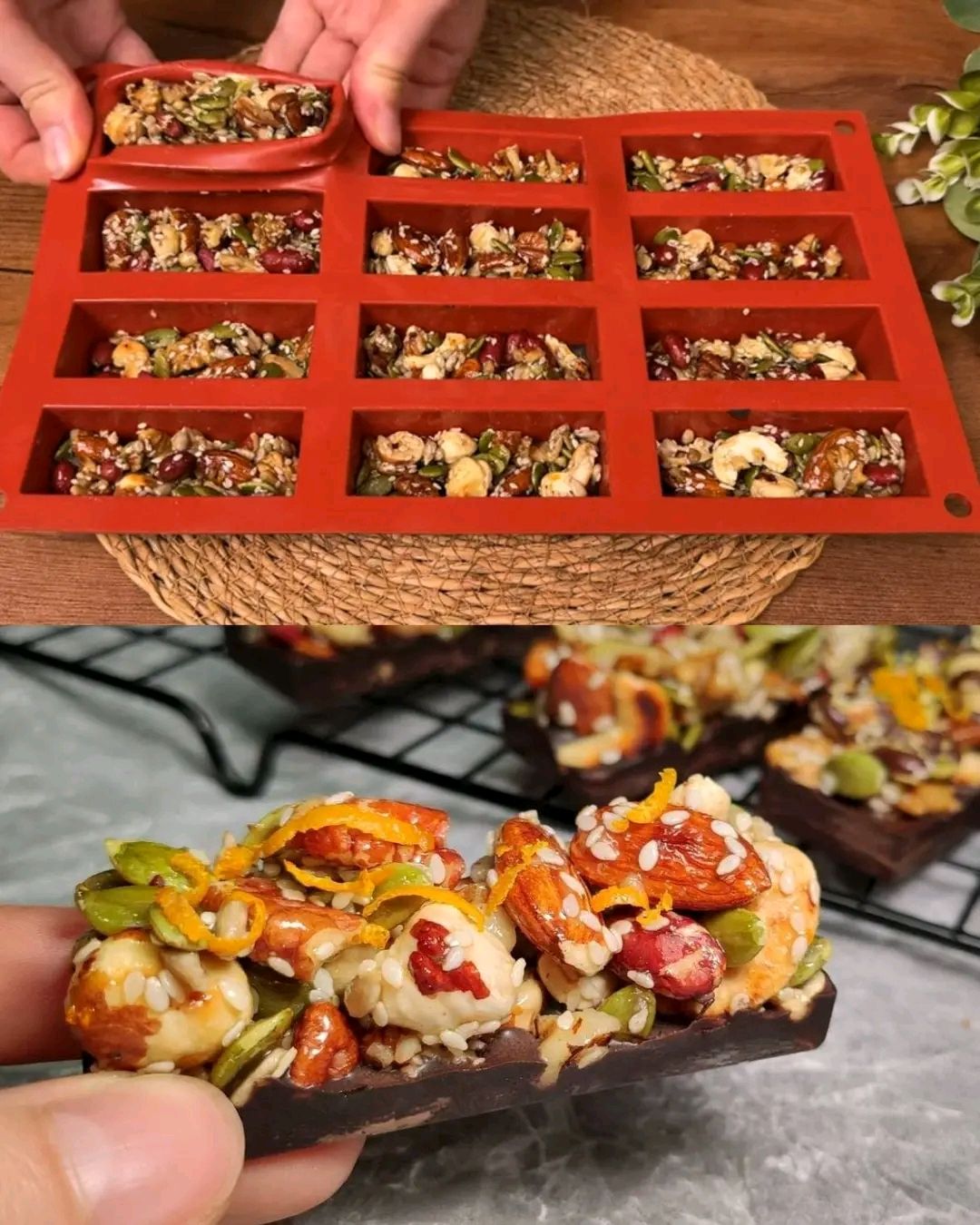 Als je fan bent van desserts die zowel gezond als heerlijk zijn, dan worden deze Chocoladerepen met Noten, Zaden en Honing vast je nieuwe favoriet. Dit recept combineert de knapperigheid van noten en zaden met de volle smaak van pure chocolade en de natuurlijke zoetheid van honing, wat resulteert in een perfecte balans tussen een gezonde snack en een verrukkelijk dessert. De toevoeging van sinaasappelrasp zorgt voor een verfrissende citrustoets, terwijl optionele kruiden je de mogelijkheid geven om de smaken naar eigen wens aan te passen. Deze repen zijn eenvoudig te bereiden, hoeven niet gebakken te worden (no-bake) en zijn perfect voor energie onderweg of als een bevredigende traktatie na het eten.