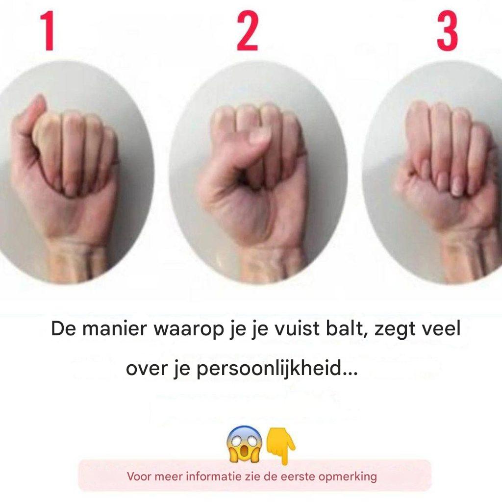 Maak je vuist en kijk hoe je dat doet om meer te weten te komen over je persoonlijkheid en enkele van je gezondheidskenmerken. Afhankelijk van de positie van je duim, leer je alles.