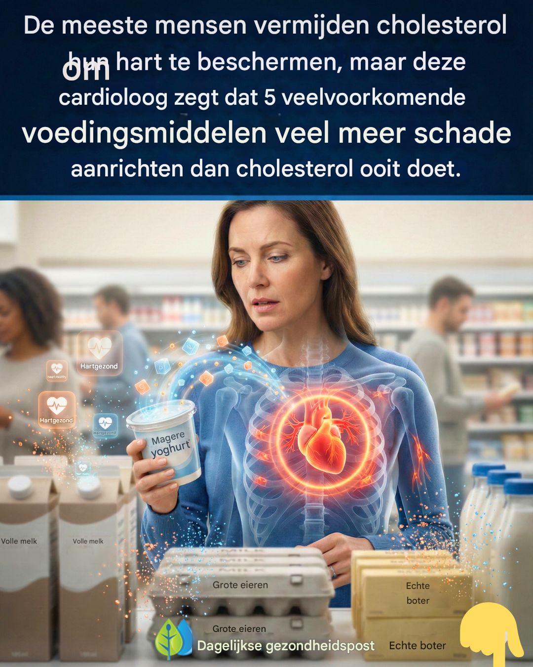 Laat ik een duidelijk voorbeeld geven: de magere yoghurt die je koopt omdat je denkt dat het een goede keuze is. Het is niets meer dan een suikerrijk dessert vermengd met chemicaliën, en vaak zijn de heilzame probiotica eruit verwijderd. We weten nu dat zelfs het verzadigde vet in volle yoghurt niet zo schadelijk is als we ooit dachten. De situatie wordt veel erger wanneer dat natuurlijke vet wordt vervangen door suiker, zoals in magere varianten. Die toegevoegde suiker zorgt voor een piek in je insulineniveau en verhoogt de ontstekingen in je lichaam aanzienlijk. Dát is de echte boosdoener. Deze producten hebben onze gezondheid al lange tijd geschaad en aanzienlijk bijgedragen aan de vorming van plaques in je slagaders, die kunnen scheuren en een hartaanval kunnen veroorzaken. Het ergste is dat veel mensen dachten dat ze goed voor zichzelf zorgden.