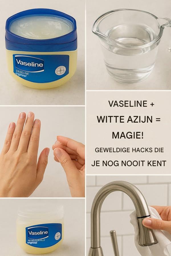 In de wereld van natuurlijke remedies en alledaagse huishoudelijke trucjes zijn er enkele combinaties die er echt uitspringen. Een voorbeeld hiervan is vaseline en witte azijn – twee onopvallende producten die je waarschijnlijk al in huis hebt. Samen vormen ze een verrassend krachtige oplossing voor alles, van huidverzorging en beautyproducten tot huishoudelijke schoonmaakmiddelen en zelfs eenvoudige eerste hulp. Hoewel elk van deze ingrediënten op zichzelf nuttig is, opent de combinatie ervan een compleet nieuw scala aan praktische toepassingen waar veel mensen nog nooit van hebben gehoord.