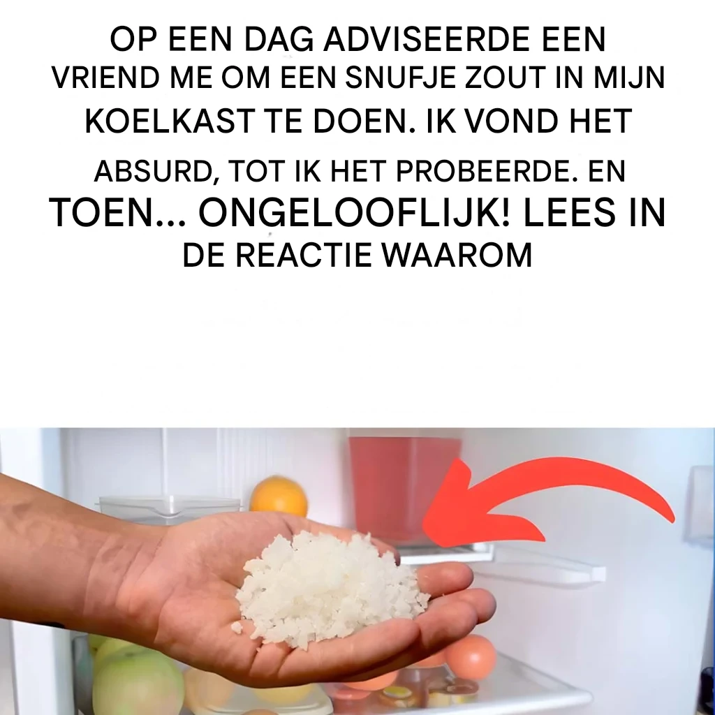 Het openen van de koelkast en het ruiken van aanhoudende geuren kan erg onaangenaam zijn. Zout werkt als een natuurlijke geurneutralisator en absorbeert effectief de aanhoudende geuren van bepaalde voedingsmiddelen.