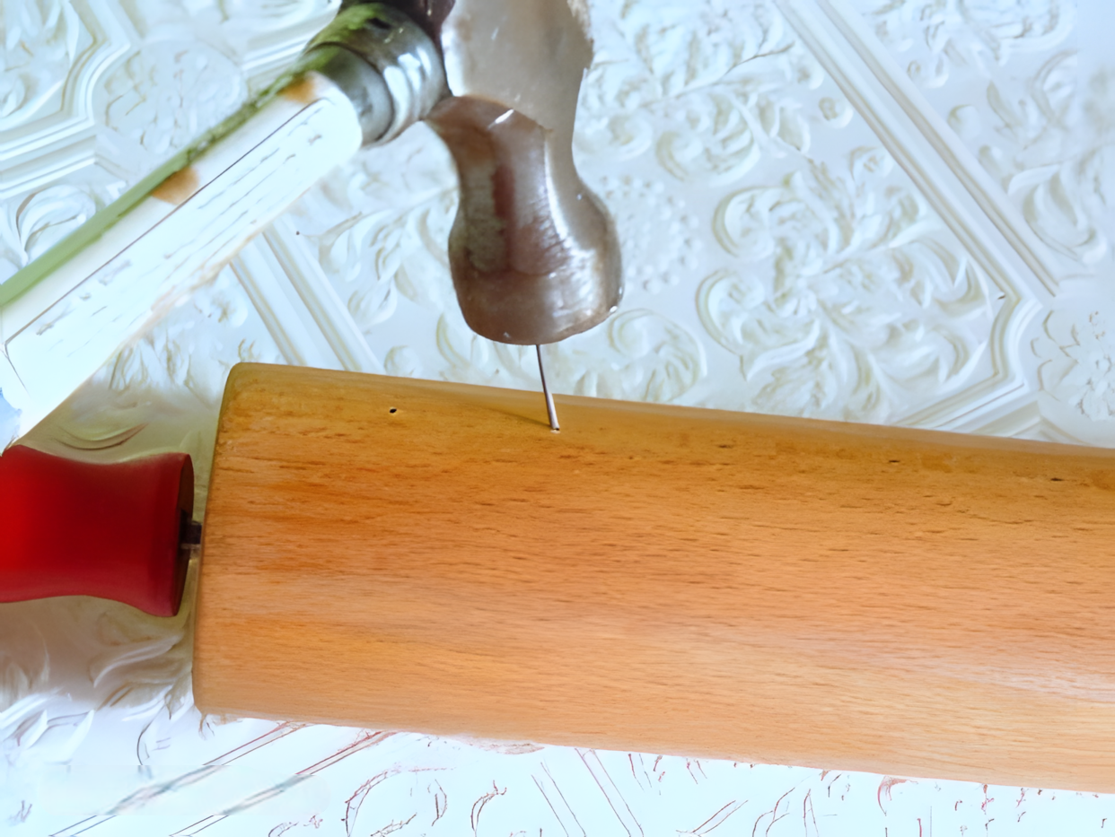 Je kunt zoveel of zo weinig lepels gebruiken als je wilt, afhankelijk van de grootte van je deegroller. Zorg er alleen voor dat je houten lepels elkaar raken als ze in de wind waaien.