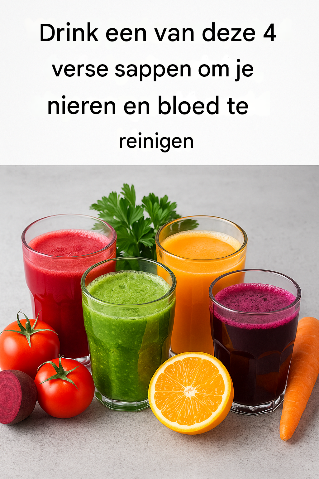 Groene sappen hebben een reinigende werking op de nieren. Ze zitten boordevol voedingsstoffen en antioxidanten, waardoor ze zeer effectief zijn in het afvoeren van gifstoffen. Het is cruciaal om de volgende groenten in je groene sappen op te nemen: courgette, spinazie, boerenkool, sla, komkommer, wortels en selderij.
