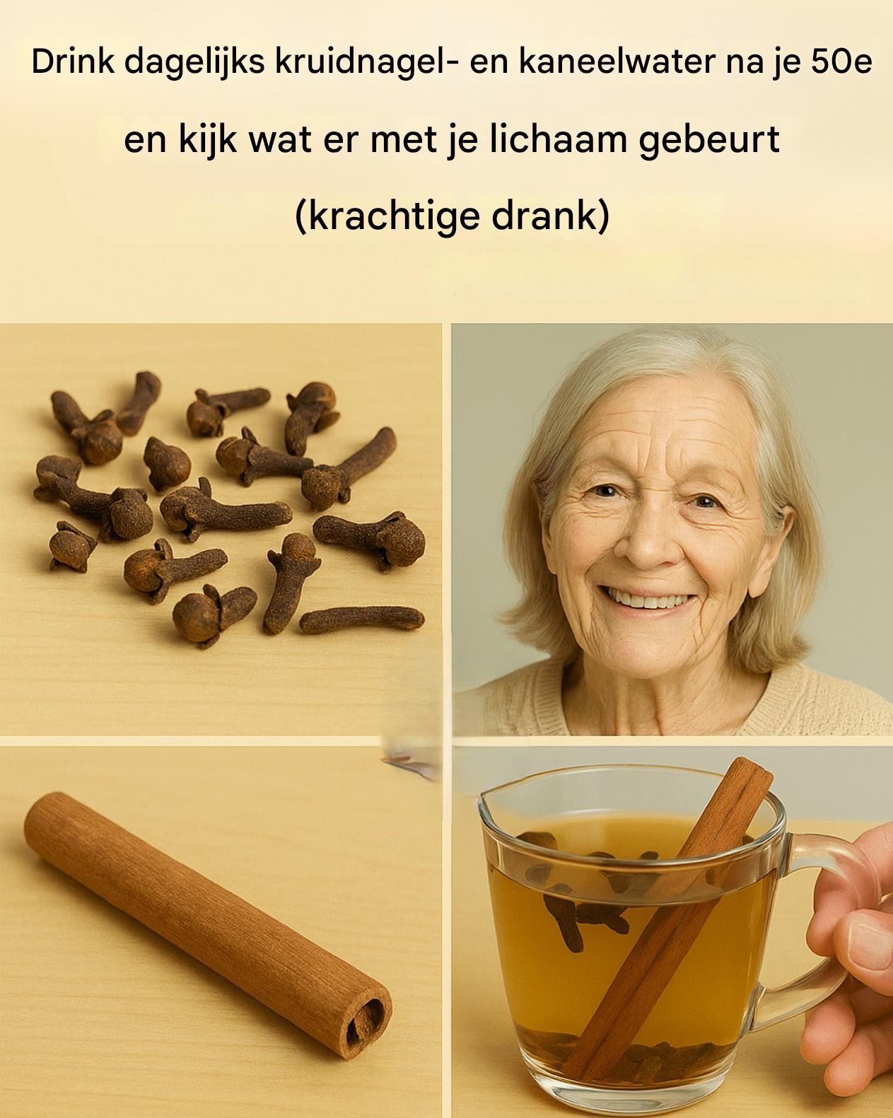 Naarmate we ouder worden, vooral na onze vijftig, heeft ons lichaam meer aandacht en zorg nodig. Een van de eenvoudigste, meest natuurlijke en effectieve manieren om je gezondheid te ondersteunen, is door dagelijks kruidnagel- en kaneelwater te drinken . Dit krachtige duo, boordevol antioxidanten en ontstekingsremmende eigenschappen, biedt een breed scala aan voordelen voor volwassenen. Daarom verdient het een plekje in je dagelijkse routine.