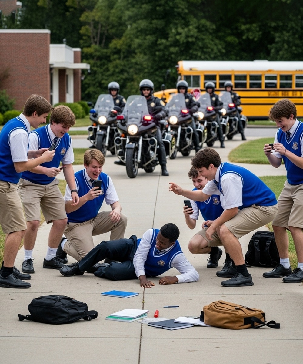 Een groep studenten pestte een nieuwkomer – totdat tien motorrijders stopten en alles veranderden