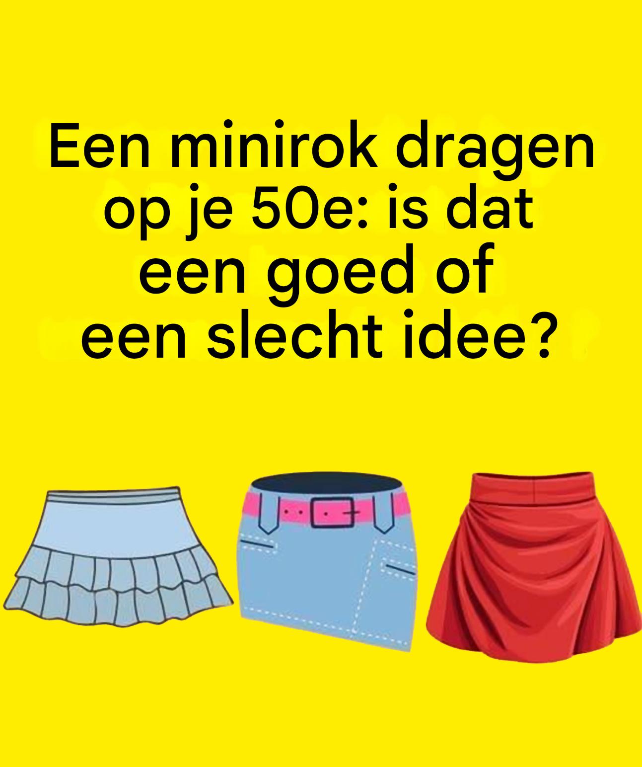 De minirok, uitgevonden in de jaren 60, symboliseerde al vrijheid en vrouwelijke emancipatie. Ook vandaag de dag staat hij voor lef en zelfvertrouwen. Op je 50e is de vraag niet « Heb ik er recht op? », maar eerder « Hoe kan ik hem aanpassen aan mijn stijl en figuur? ». Mode kent geen leeftijd, maar het is belangrijk om te weten hoe je het moet stylen.