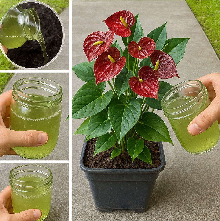 Anthurium, ook wel bekend als  de flamingobloem , is een lust voor het oog met zijn wasachtige, kleurrijke bloemen en glanzende bladeren. Veel plantenliefhebbers merken echter dat deze opvallende plant na een tijdje  stopt met bloeien , ook al ziet hij er gezond uit. Wat gebeurt er dan? Het antwoord is simpel:  een natuurlijke voedingskrachtpatser die je thuis in een paar minuten kunt klaarmaken.
