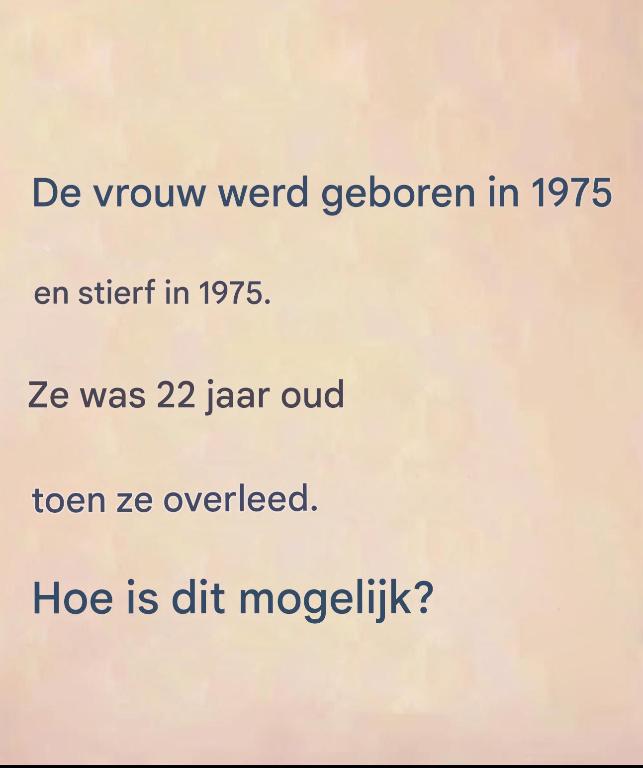 Er circuleert een mysterieuze zin op het internet: « Geboren in 1975, overleden in 1975, was ze 22 jaar oud. » Absurd? Ik weet het niet zeker… Ontdek hoe deze digitale optische illusie met onze geest speelt en waarom de oplossing slimmer is dan het klinkt.