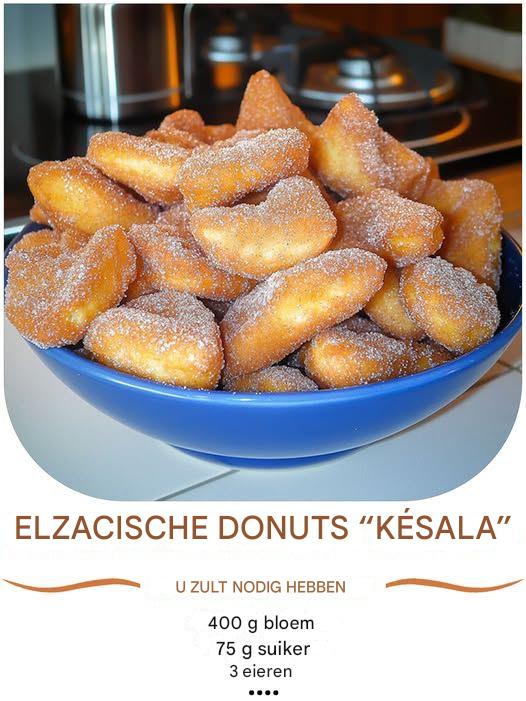 Deze Elzasser donuts, « Késala » genaamd, zijn een knapperige maar toch smeltende traktatie. Perfect als tussendoortje of dessert, ze zullen elke zoetekauw bekoren!