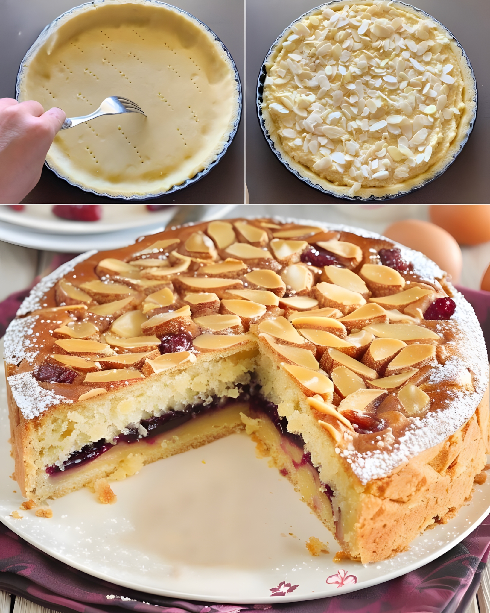 💖 Een knapperige korst, een zijdezachte amandelvulling en een vleugje abrikozenjam – deze frangipanecake is een feest voor de smaakpapillen! 💖