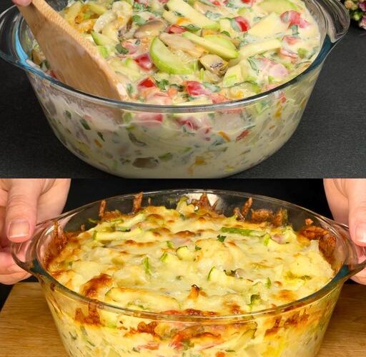 Deze gebakken bloemkool en groenten met zure room en kaas is een stevig en voedzaam gerecht, perfect voor familiediners of borrels. Gevuld met diverse groenten en een romig eimengsel is dit gebak niet alleen heerlijk, maar ook rijk aan vitamines en mineralen. Het is een geweldige manier om te genieten van een verscheidenheid aan groenten in één hartig gerecht.