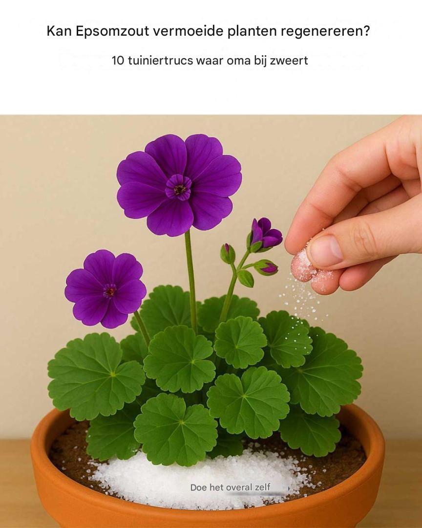 plantenregenerator Epsomzout, chemisch bekend als magnesiumsulfaat, is het geheime wapen van elke tuinier. Het levert essentiële voedingsstoffen die planten helpen sterker en gezonder te groeien. Magnesium is essentieel voor fotosynthese, terwijl zwavel helpt bij de productie van plantaardige eiwitten. Om vermoeide planten nieuw leven in te blazen, los je 1 eetlepel Epsom-zout op in 3,8 liter water en geef je de planten maandelijks water. Deze eenvoudige oplossing kan leiden tot groenere bladeren en levendigere bloemen.