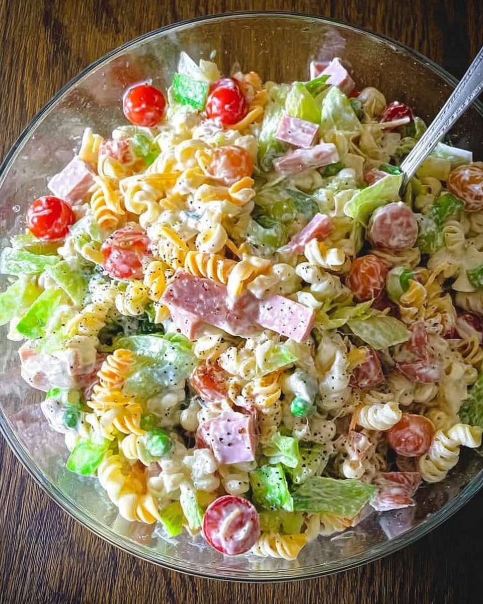 Gelaagde pastasalade  is meer dan alleen een zomers gerecht: het  is een culinair meesterwerk, even mooi om te zien als heerlijk om te eten. Geserveerd in een grote, transparante kom of in verrines, betovert het met zijn kleurrijke laagjes, versheid en harmonieuze mix van texturen. Ideaal voor een picknick, buffet of een gezellige maaltijd, het past bij alle smaken en is gemakkelijk van tevoren te bereiden.