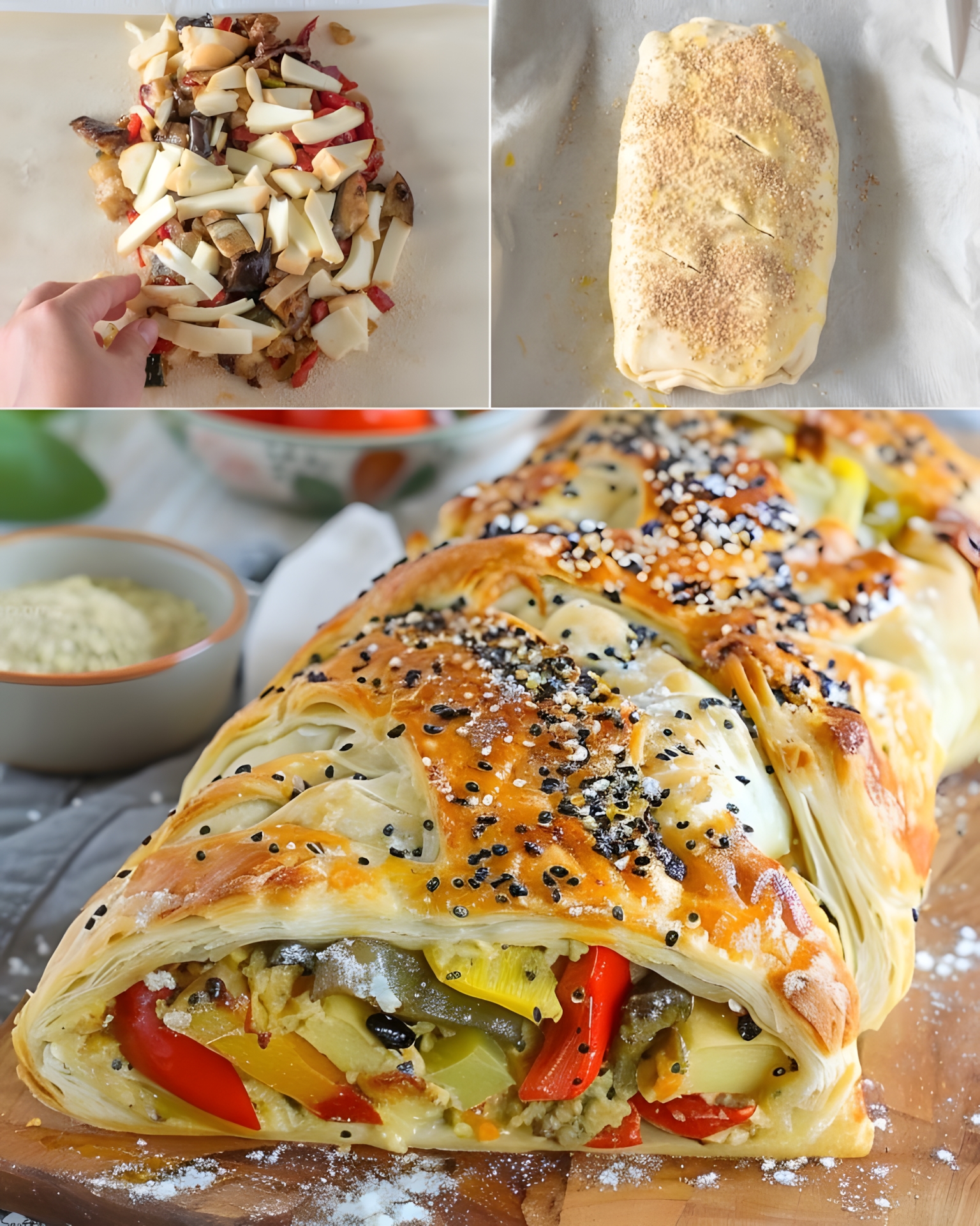 Gevulde bladerdeegrol met groenten en kaas 🧀🥦 – Beste recepten