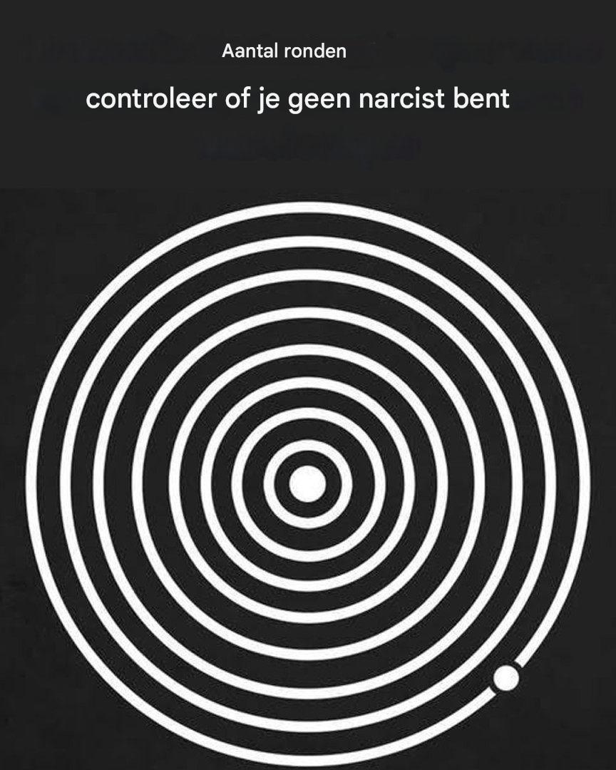 Je hebt deze meme misschien al eens eerder gezien: een afbeelding van concentrische cirkels met de pakkende titel: « Het aantal cirkels dat je ziet, bepaalt of je een narcist bent. » » Intrigerend, toch? Wij kijken, wij tellen… en wij vragen ons af: ben ik normaal? narcistisch? Of is dit gewoon weer een internetgrap?
