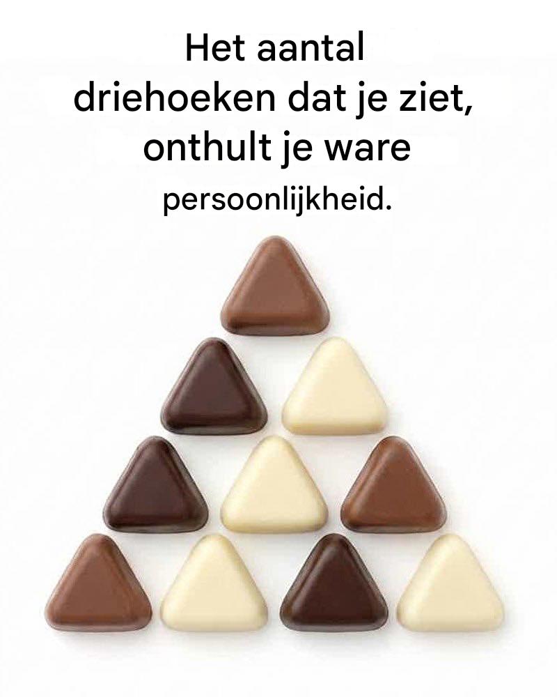 Op het eerste gezicht lijkt deze afbeelding simpel: een nette rangschikking van chocoladekleurige driehoeken die op elkaar gestapeld zijn tot een grotere driehoek. Maar laat je niet misleiden – deze visuele puzzel zorgt ervoor dat mensen even stilstaan, staren en hun eigen waarneming in twijfel trekken.