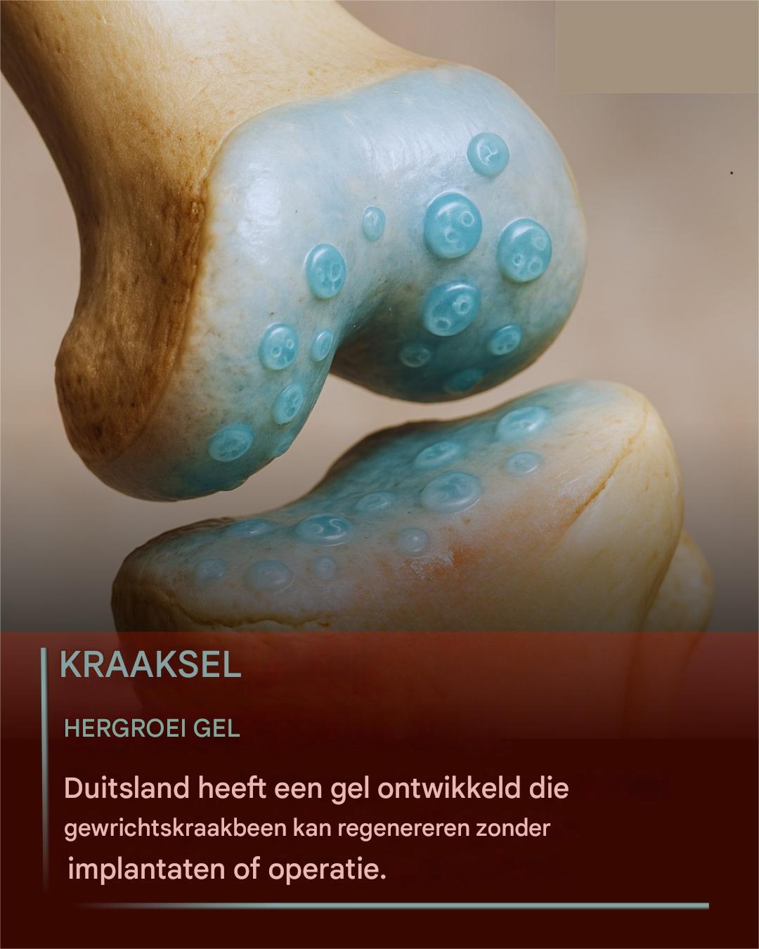 Het laatste deel van de artikelen? Een gel die in Duitsland wordt gebruikt om het kraakbeen te vervangen
