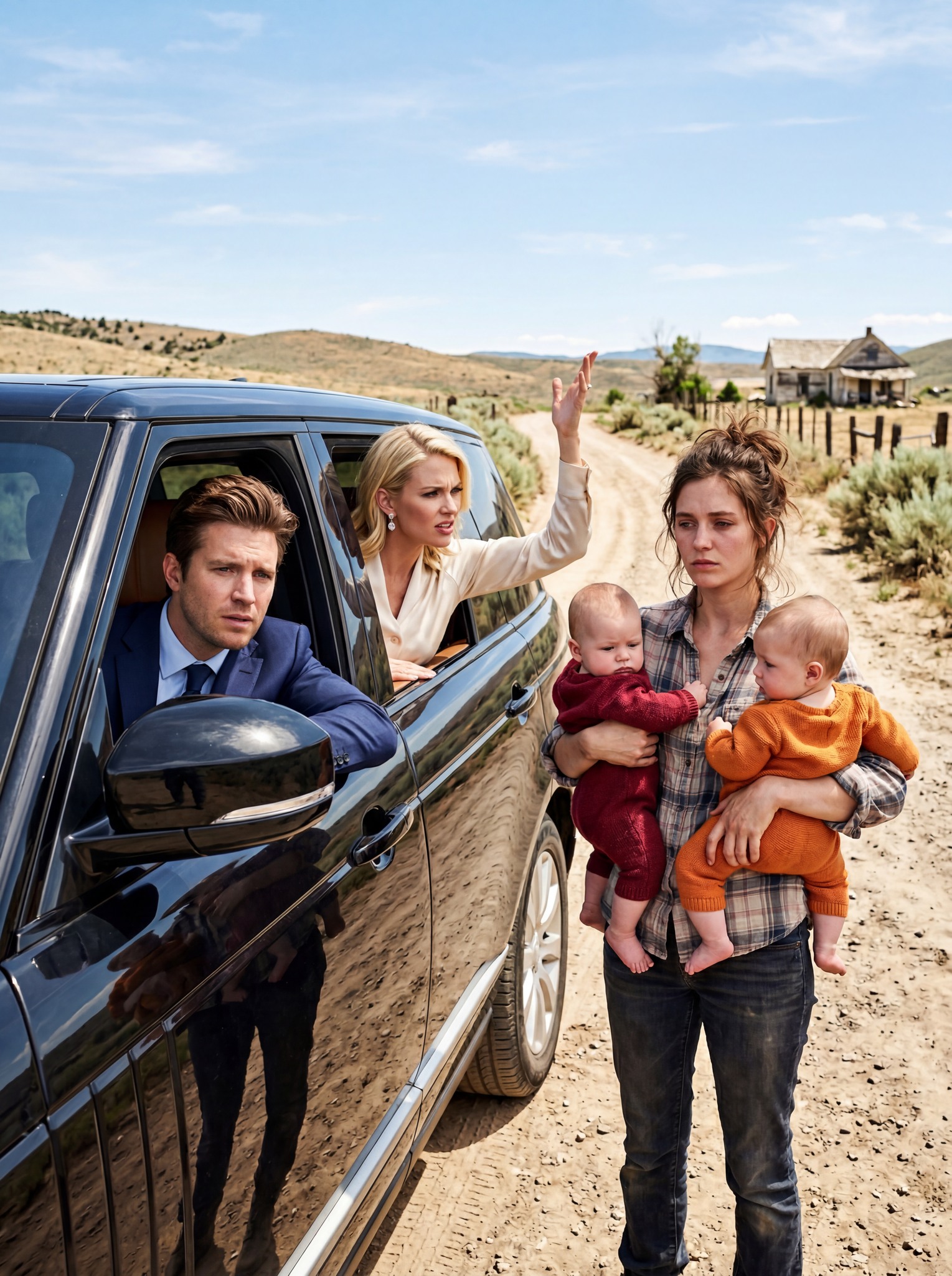 Nu stond ze langs de kant van een landweg, met twee kinderen in haar armen die mijn gezicht in miniatuur droegen.
