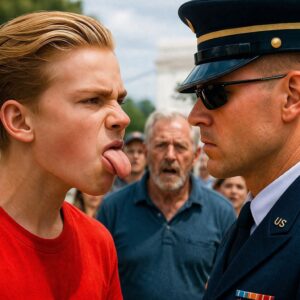 Enkele mensen in zijn omgeving draaiden zich plotseling om, hun afkeuring niet langer verhuld. Een vrouw in een bloemenjurk legde haar hand op de schouder van haar dochtertje en trok haar terug. Een jongen van universiteitsleeftijd met een camera om zijn nek mompelde « Wat is dit in hemelsnaam? » tegen niemand in het bijzonder. De veteraan met de verminkte hand zette een stap naar voren voordat zijn vrouw hem bij zijn mouw greep.