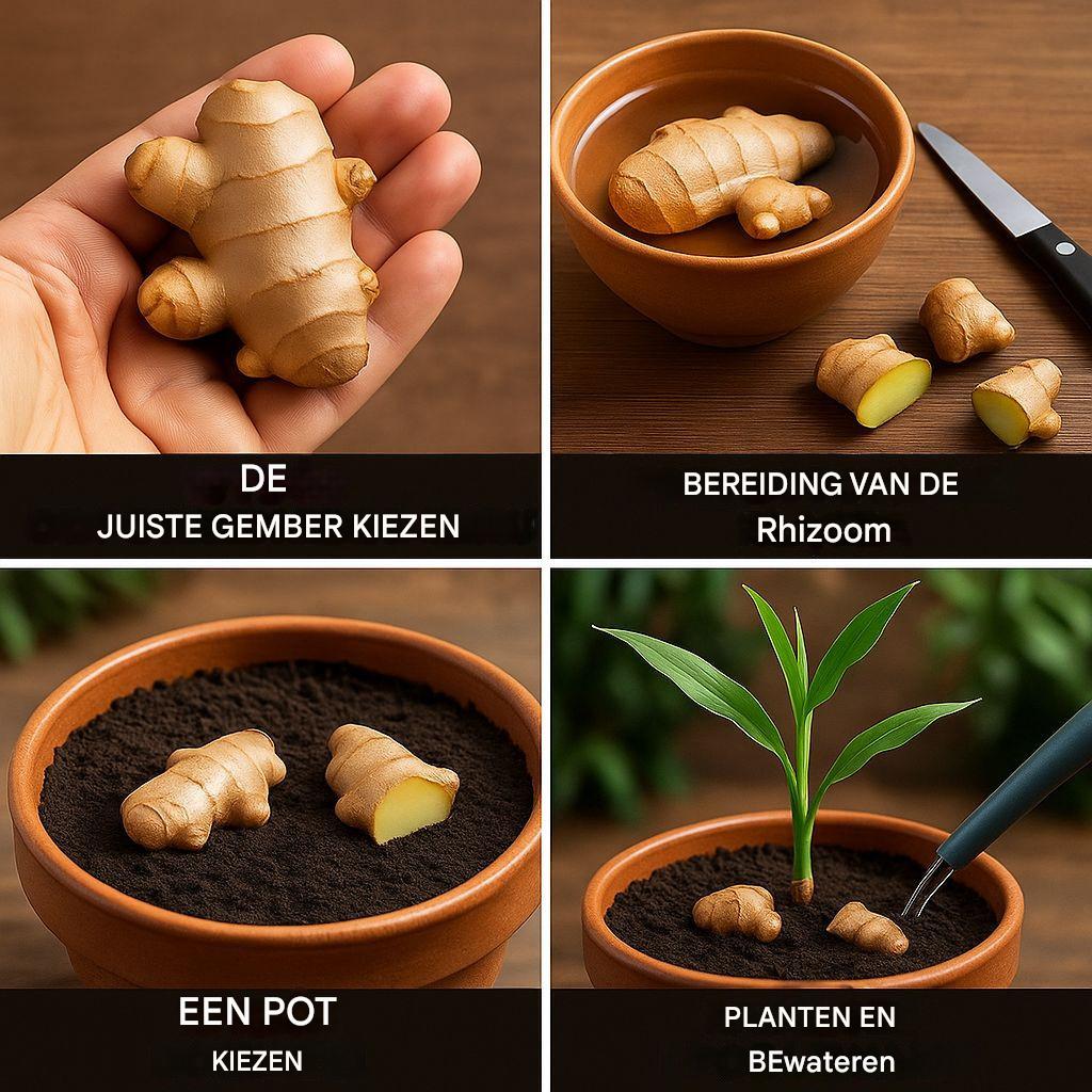Kies stevige, vlezige gemberwortelstokken met goed ontwikkelde ogen.