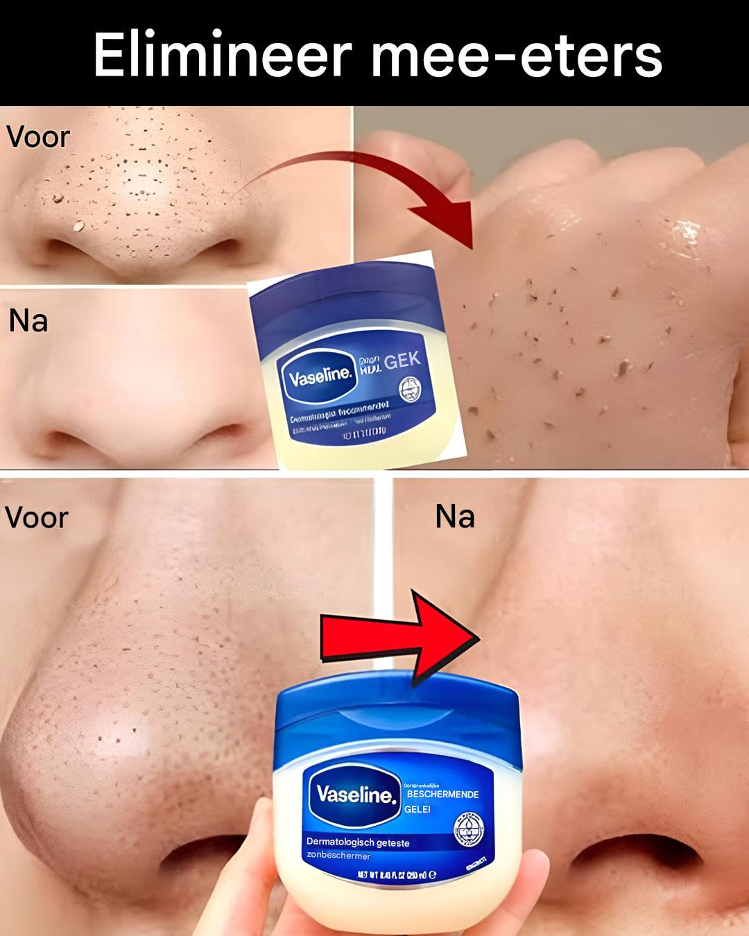 Hoe je mee-eters en whiteheads op natuurlijke wijze van je neus en gezicht verwijdert met vaseline
