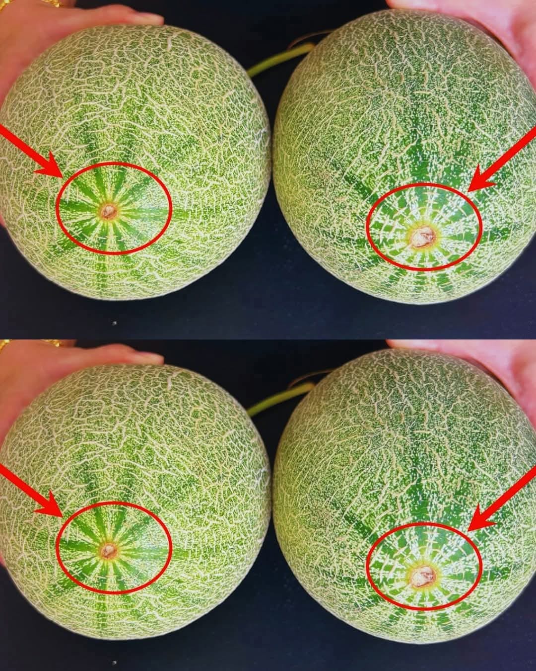 Inspecteer de navel, oftewel het hart, van de meloen. Een kleine navel geeft aan dat de meloen volledig rijp en zoet is. Een grotere navel kan een minder intense smaak hebben.