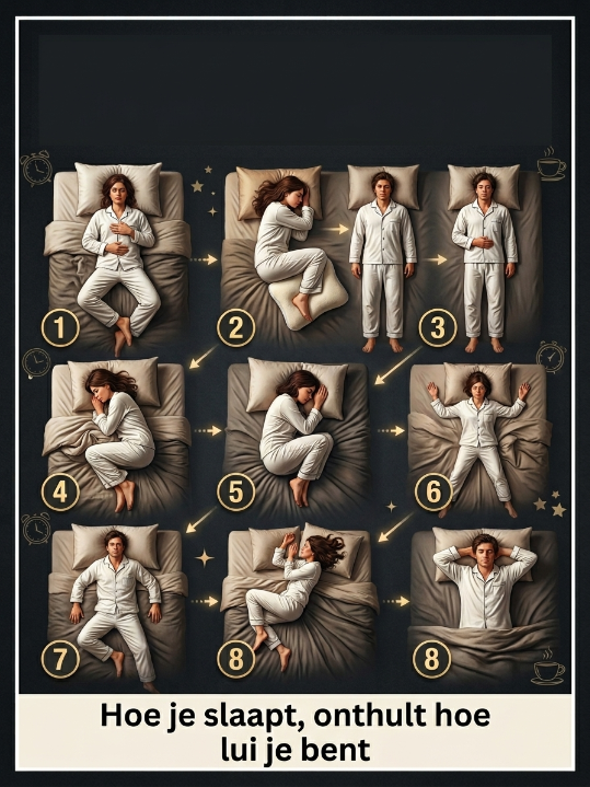 Het zou een afbeelding of tekst kunnen zijn met de tekst 'DE MANIER WAAROP JE SLAAPT, ONTHULT HOE LUI JE BENT!'