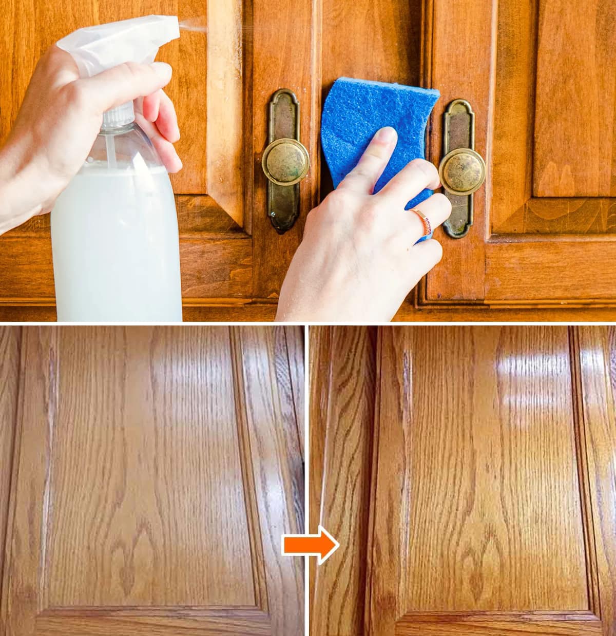 Vetophopingen op keukenkastjes zijn normaal en komen vaak voor, maar we denken er zelden aan om ze schoon te maken. Vet dat zich ophoopt op de keukenkastjes wordt plakkerig en trekt uiteindelijk stof en ander vuil aan, waardoor de keukenkastjes er dof uit gaan zien.