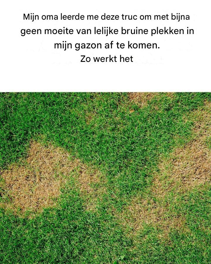 Wat me echter altijd opviel, was dat ze nooit urenlang in de tuin leek te zwoegen zoals andere huiseigenaren. Ze had een geheim, een trucje dat ik nu in mijn eigen tuin gebruik. Het is een simpele, bijna moeiteloze methode om van die lelijke bruine plekken af te komen die een verder perfect gazon kunnen ontsieren. Zo werkt het.