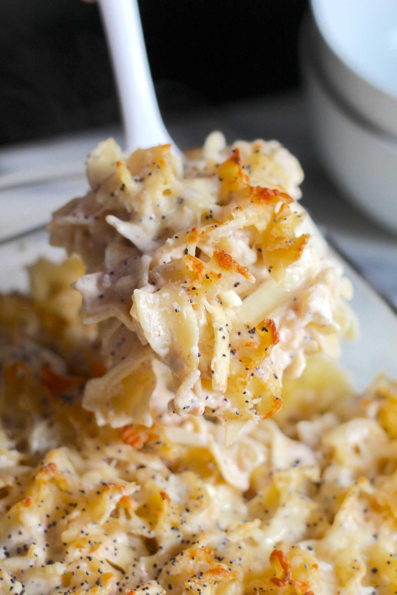 Het geheim van dit gerecht zit hem in de rijke, romige saus. De basis van de saus bestaat uit een mengsel van champignonsoep, kippenbouillon, worcestersaus en een handvol kruiden. De kwark en zure room zorgen voor de pittige smaak. En laten we de maanzaadjes niet vergeten: deze kleine toevoegingen zorgen voor een vleugje nootachtige smaak en een subtiel knapperige textuur. Heerlijk!