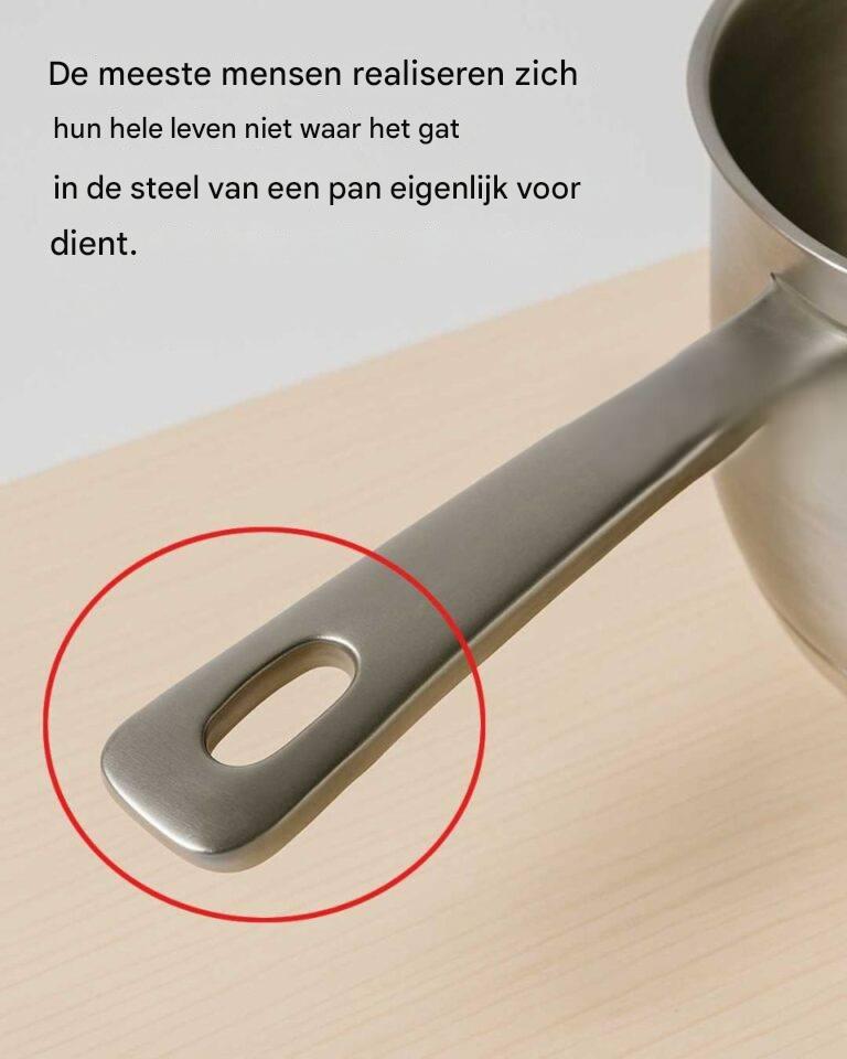 Veel mensen denken dat het gat in de steel van een pan alleen bedoeld is om de pan aan een haak te hangen. Hoewel dit inderdaad een van de functies is, is het niet de enige. Anderen zien het wellicht als een ontwerpfout of een esthetische keuze, en realiseren zich niet welke functionele voordelen het biedt. Sommige mensen negeren het zelfs volledig en denken er niet eens over na. In plaats daarvan concentreren ze zich op de meer opvallende kenmerken van hun kookgerei. Deze misvattingen verhinderen dat mensen hun keukengerei optimaal benutten.
