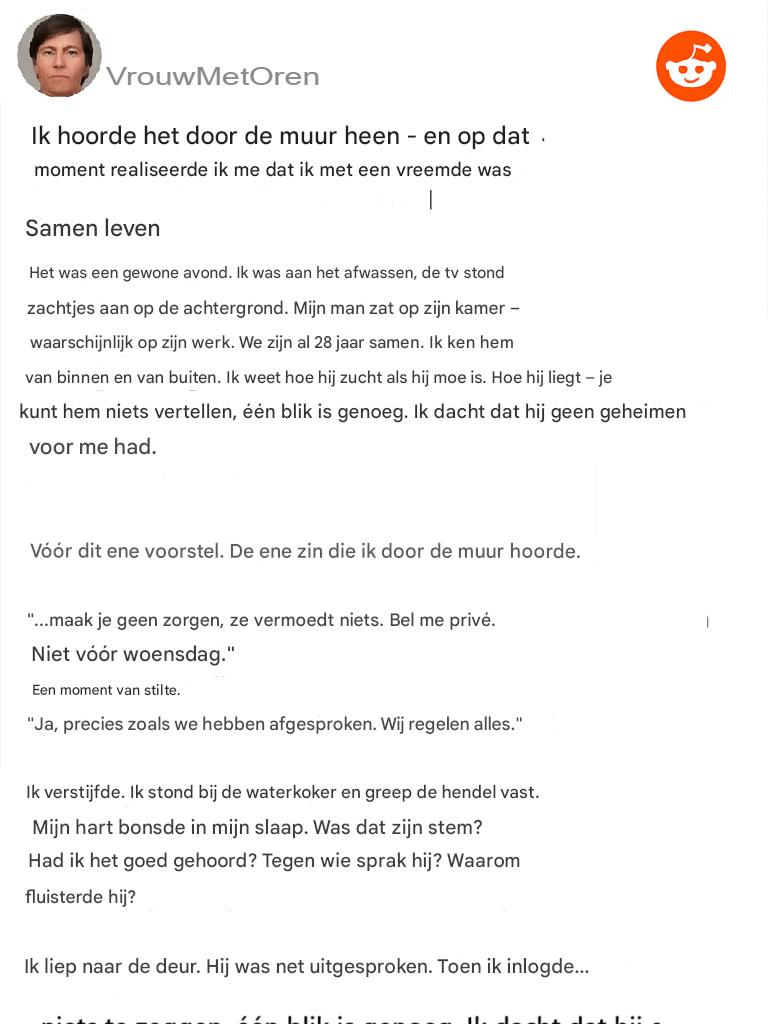 We zijn al 28 jaar samen. Ik ken hem van binnen en van buiten. Ik weet hoe hij zucht als hij moe is. Hoe hij liegt – hij hoeft niets te zeggen, alleen maar een blik. Ik dacht dat hij geen geheimen voor me had.
